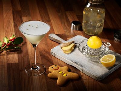 METHOD:Add Smirnoff Gold Liqueur, ginger syrup, lemon juice and egg white to the shaker. Dry shake the mixture. Fill the shaker with ice and shake until cold. Strain into a martini glass. Add a gingerbread man biscuit and serve.