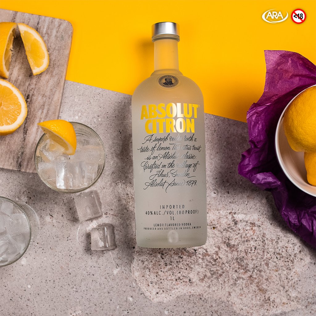Absolut vodka, 40% alcohol with artificial flavours.