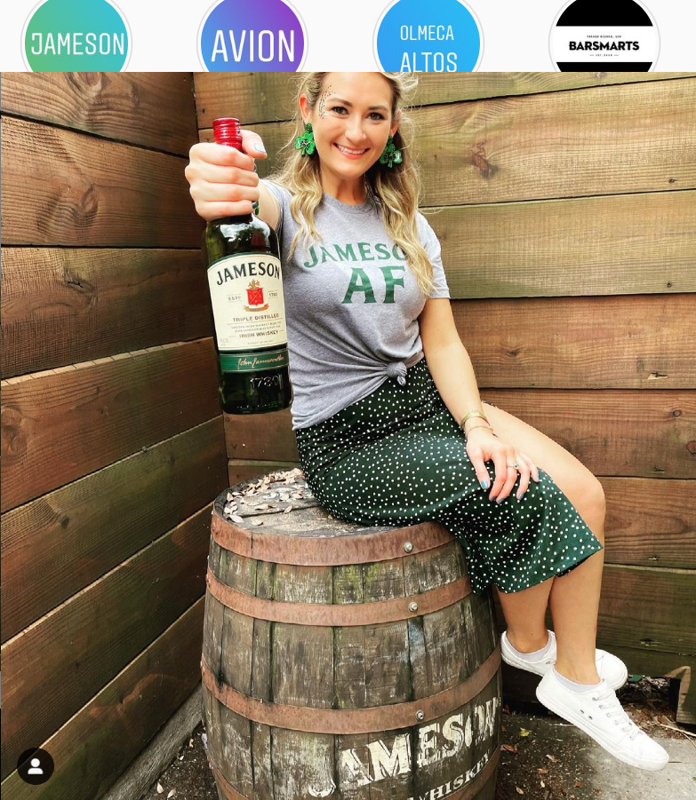 Lauren Sesselmann drinks Jameson 40% alcohol by #pernodricard.